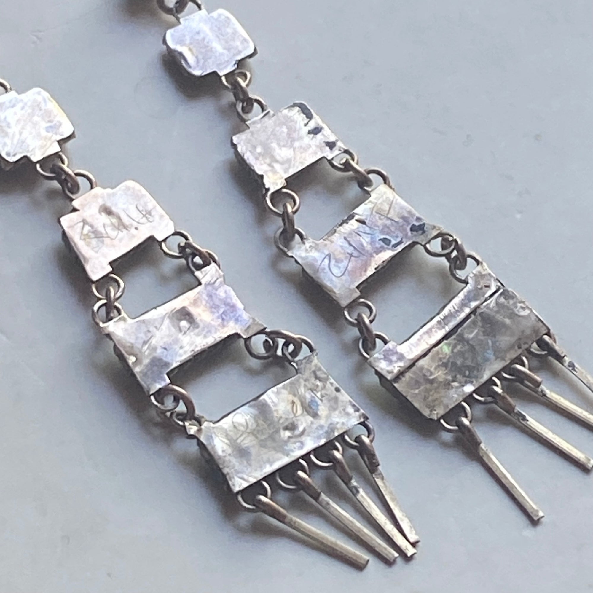 Vintage Zuni Turquoise "Petit Point" Chandelier Earrings - Silver