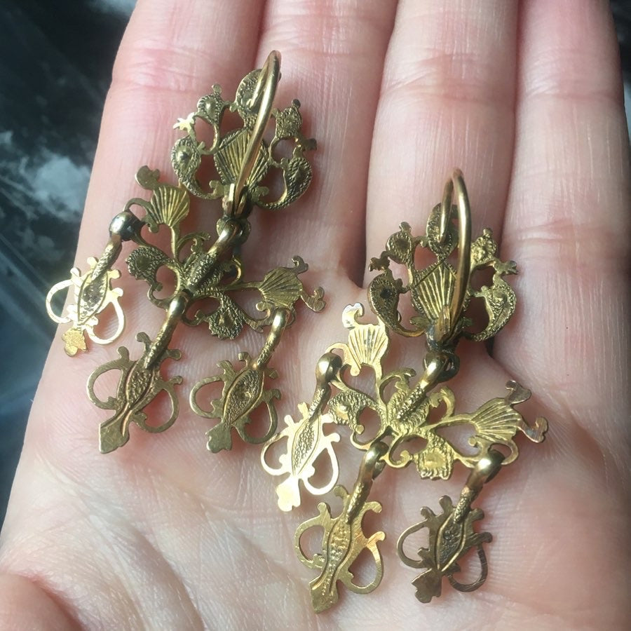 Victorian Revival Style Gold and Paste Dormeuse Tassel Earrings - 19k