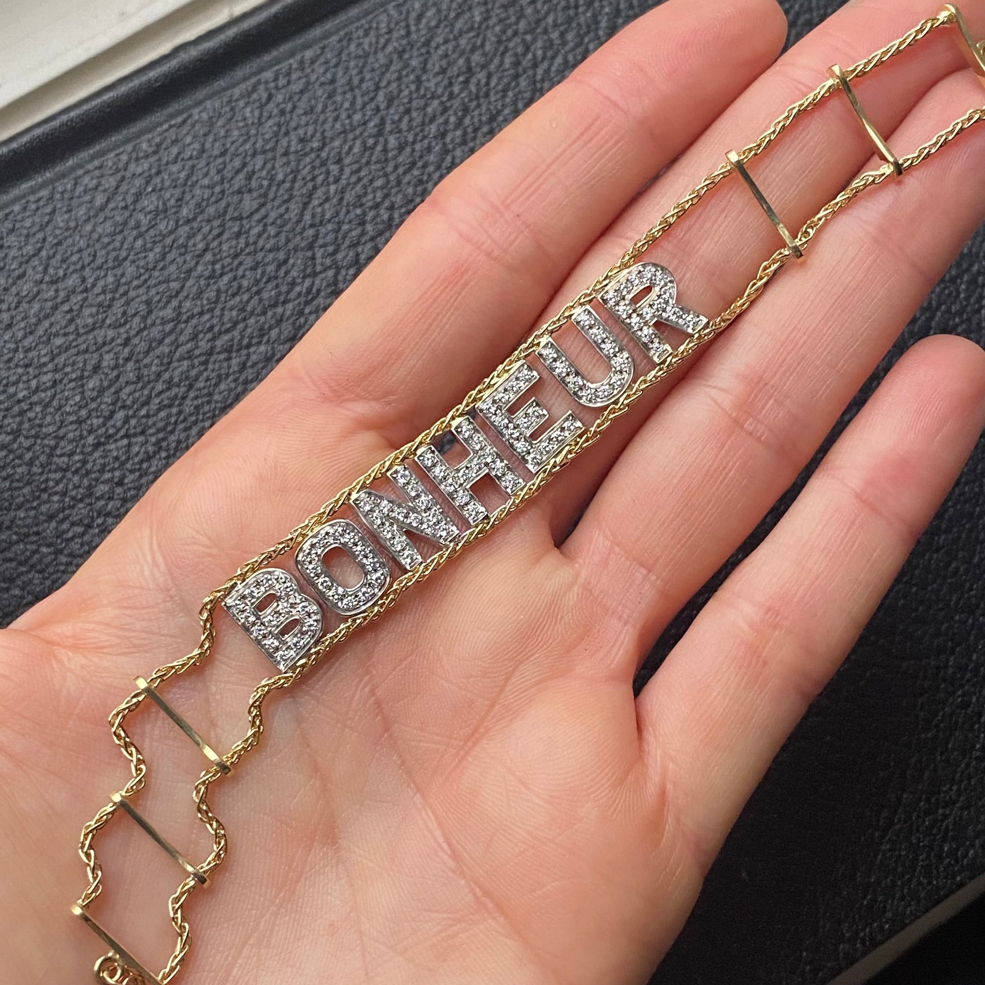 Custom "Bonheur" Diamond Chain Bracelet - 18k