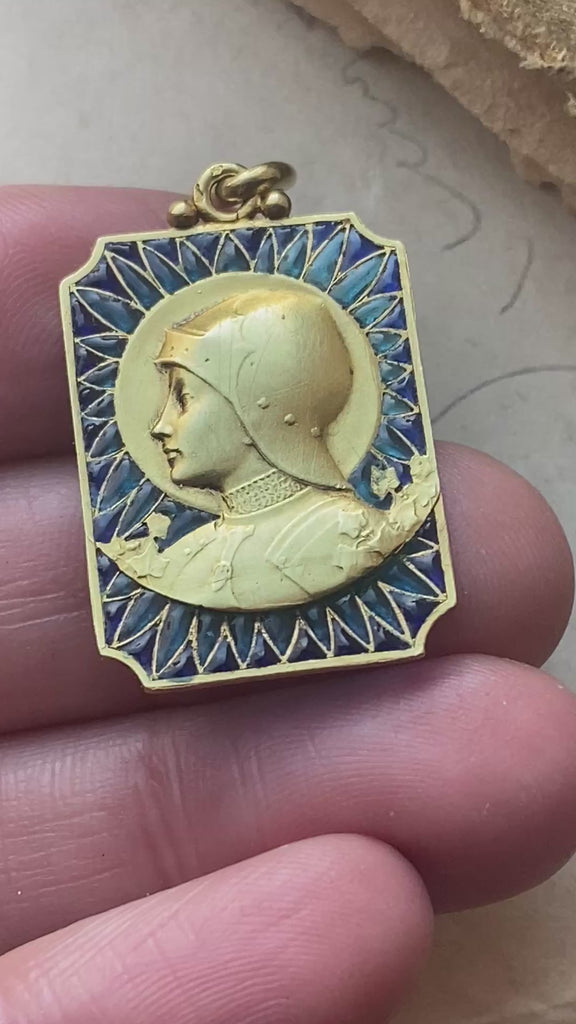 Antique Art Nouveau Joan of Arc - "Plique-à-jour" pendant - 18k