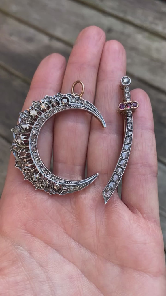 In the Victorian era, this type of "honeymoon" brooch was often gifted to a bride from her groom, as the crescent symbolized the "delights of the night".