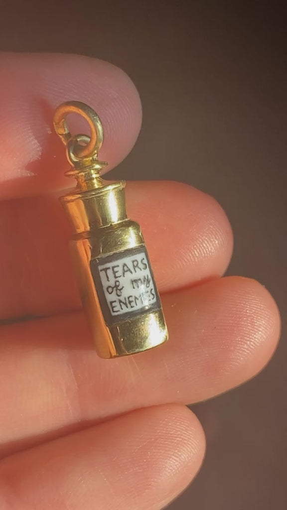 Someone once said to me, in a moment of softness, you know you're doing well when other people are talking badly about you. I have always found the vitriol of others to be fuel for my fire. This "Tears Of My Enemies" bottle charm is a luxe FU to the haters.
