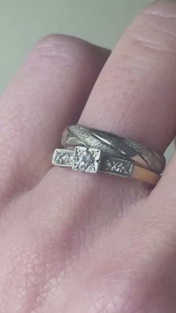 The ring is in excellent vintage condition. The ring is marked "18ct & Plat" on the inner shank. This is ring weighs 2.9g, is a size 7.25 and can be sized by your jeweller.